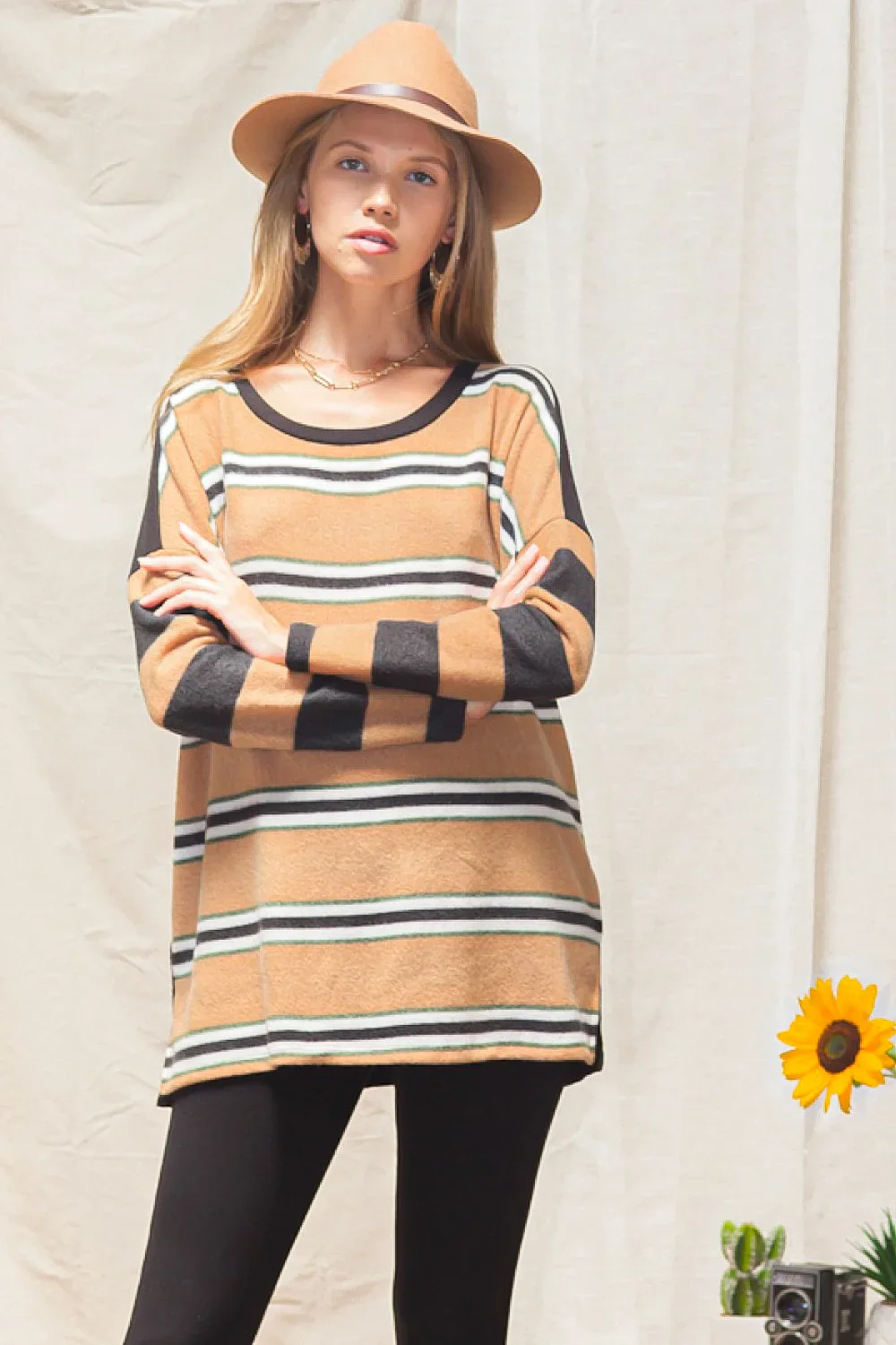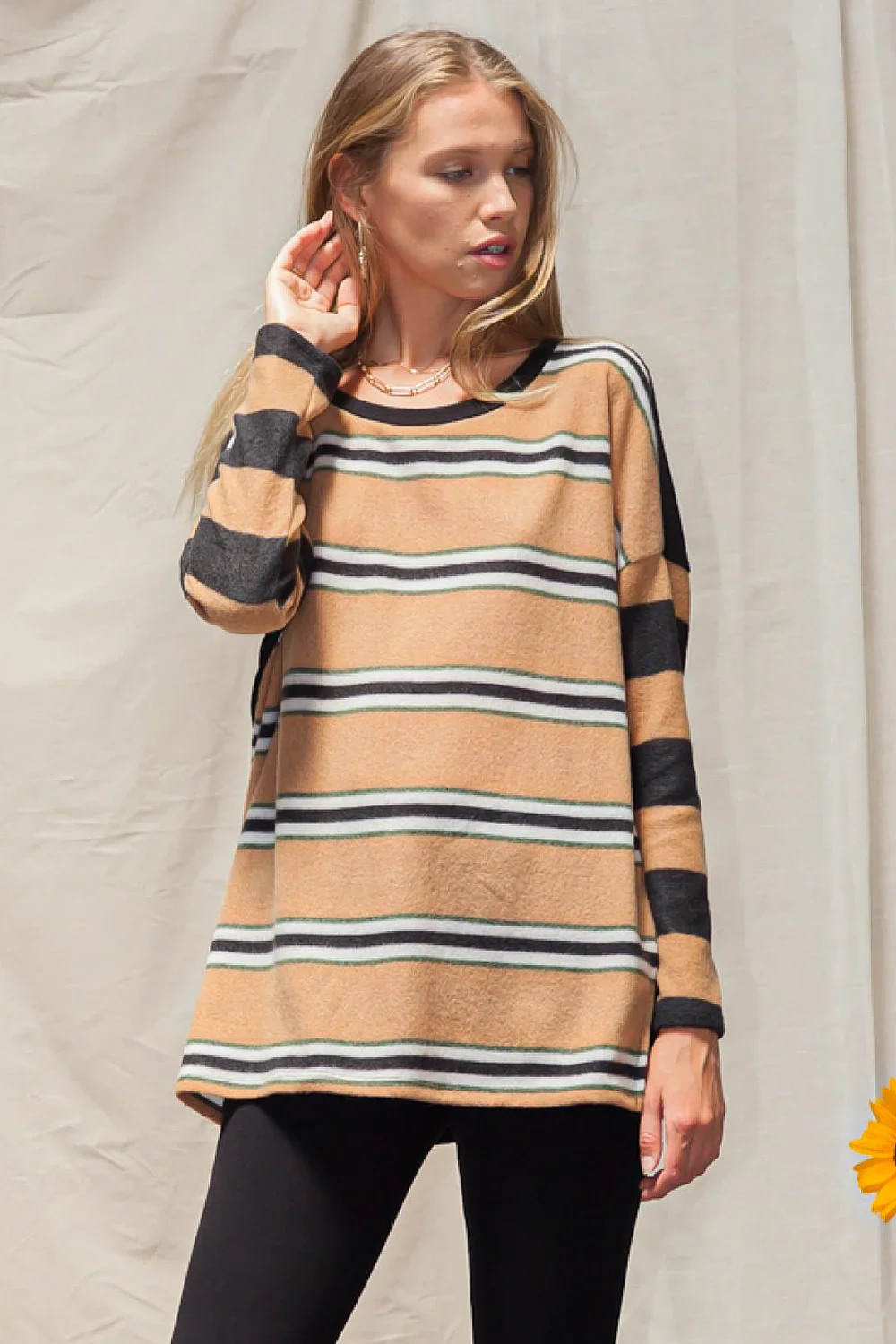 Plus Size Striped Scoop Neck Long Sleeve Oversized Knit Sweater Top