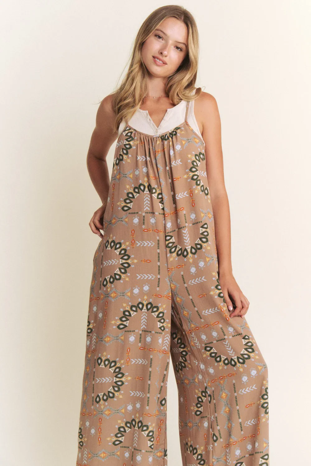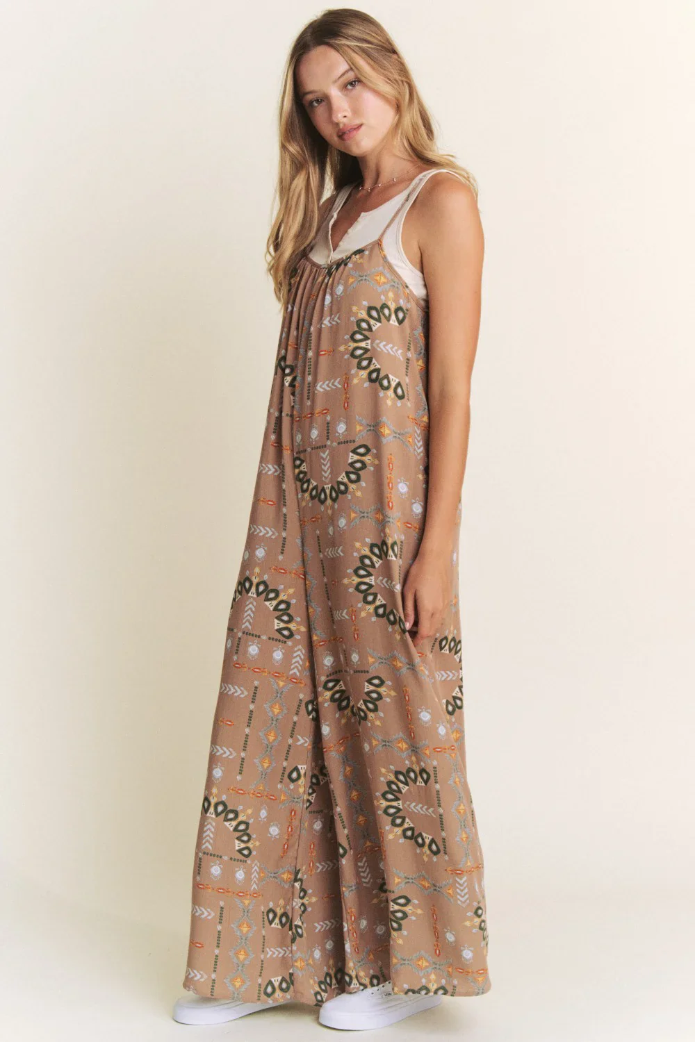 Plus Size Boho Aztec Print Wide Leg Boutique Trendy Sleeveless Jumpsuit