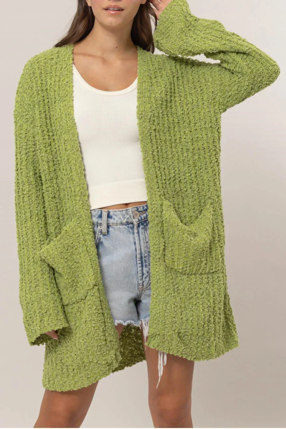 Popcorn Knit Open Front with Pockets Oversized Long Sleeve Sweater Cardigan