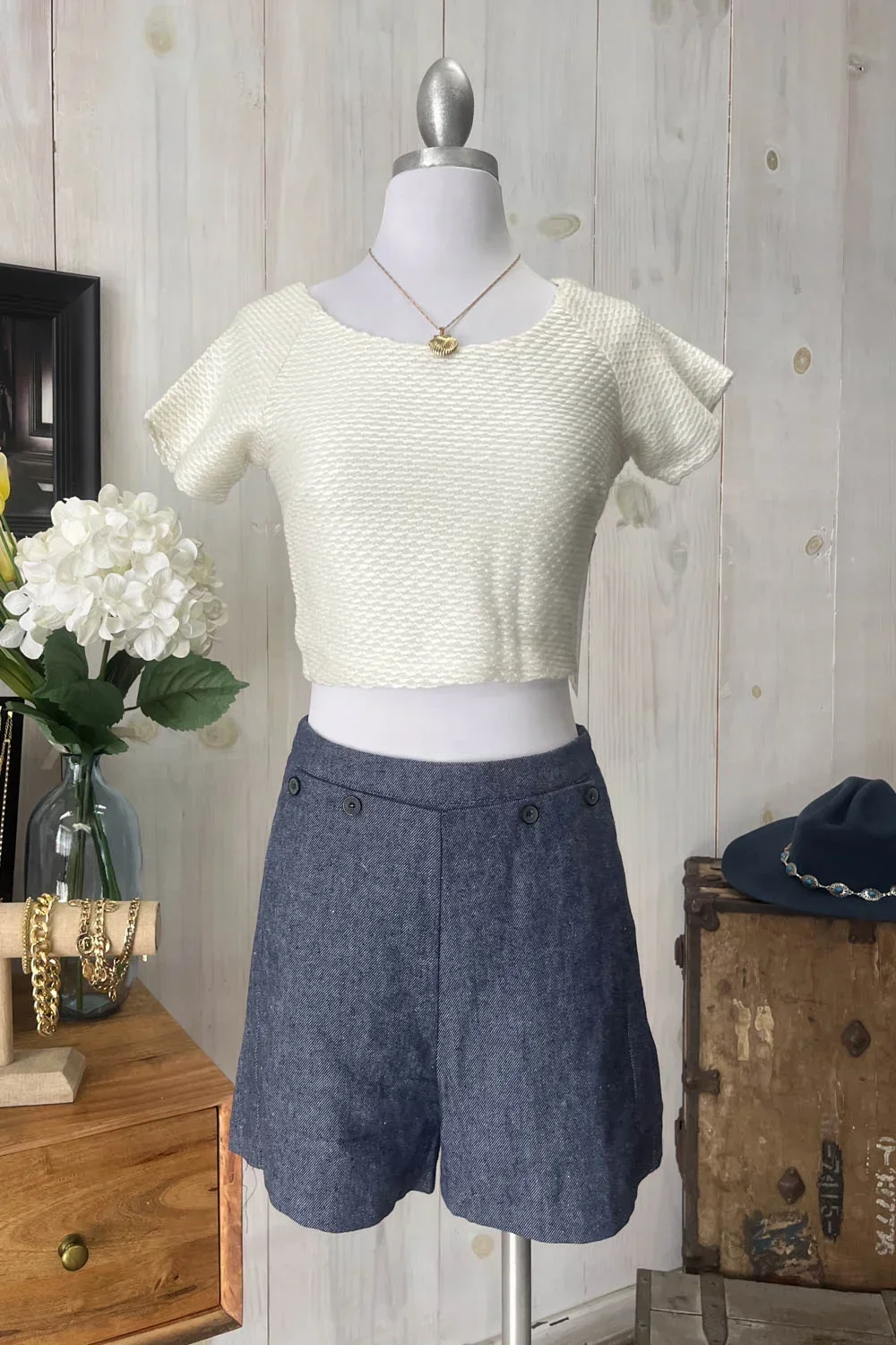 High Waisted Button Detail Tailored Summer Denim Fashion Shorts