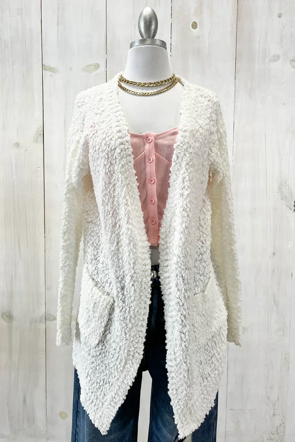Trendy Popcorn Knit Open Front Cozy Lightweight Oversized Cardigan Sweater